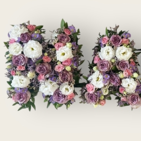 Lettered Tribute in a mix of seasonal flowers in a colour of your choice.