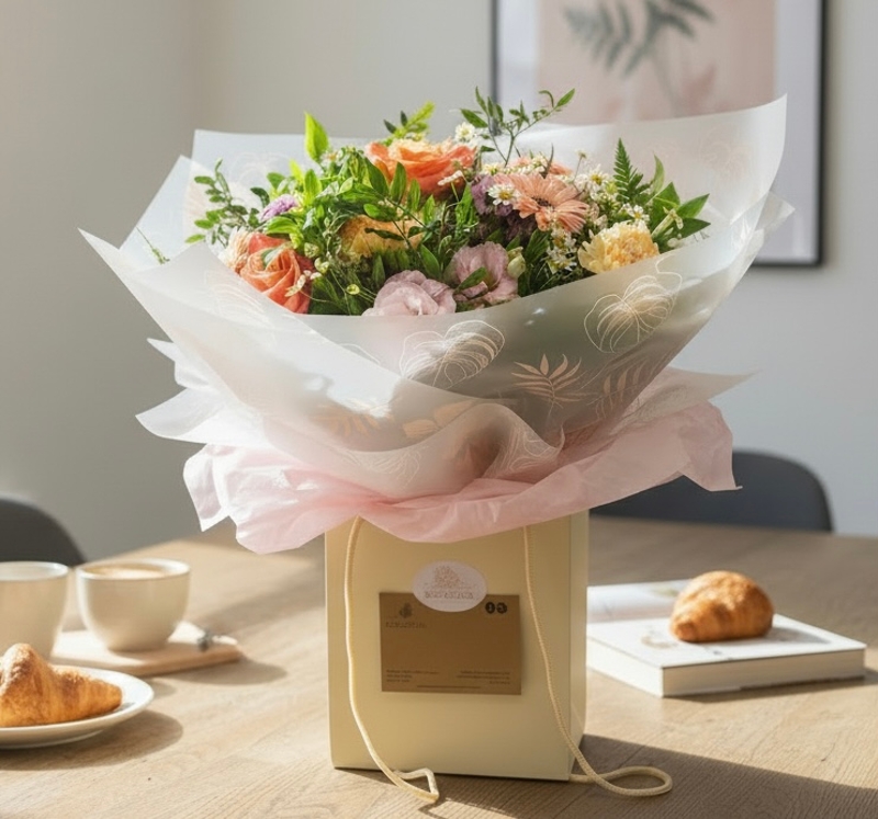 A fuller, more abundant bouquet of fresh seasonal flowers in vibrant yet elegant tones. A stunning Mother’s Day gift when only something truly special will do.